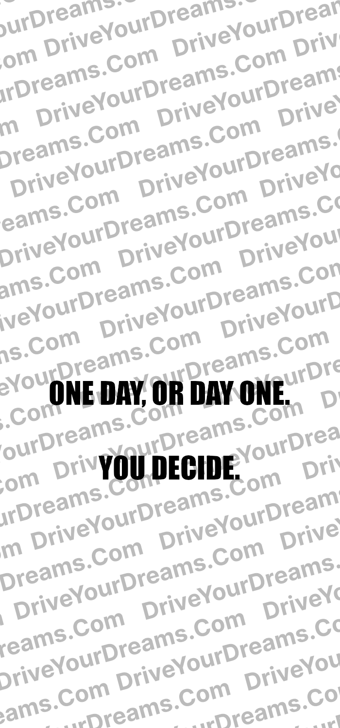 A motivational wallpaper without watermark and with this quote: "One day, or day one. You decide."