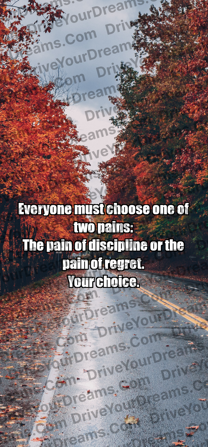 A motivational wallpaper without watermark and with this quote: "Everyone must choose one of two pains: The pain of discipline or the pain of regret. Your chocie."